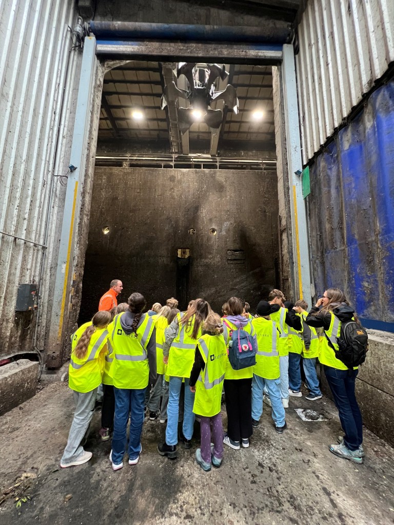 Bildunterschrift: Schülerinnen und Schüler der Klasse 6d der Gerhard-Thielcke- Realschule Radolfzell im Kompostierwerk von Reterra in Singen.